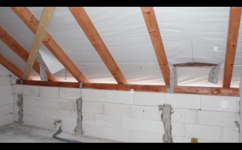 Je nutné dbát nato aby střešní okno končilo pod vaznicemi nebo ve stropě.