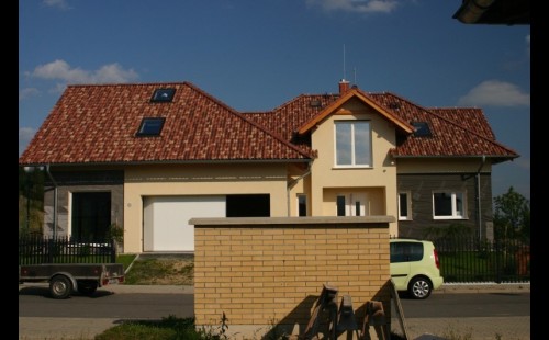 Tato montáž nás přivedla nedaleko Mladé Boleslavi do vilové čtvrti.Dům již z dáli vynikal svoji střešní krytinou Meditteran.Zvolili jsme lemování HZI pro vysokou vlnu.Střešní okna dodala celému domu půvab a zkrášlila jej.
